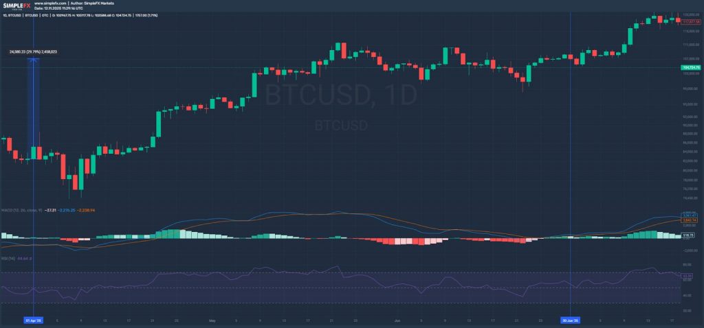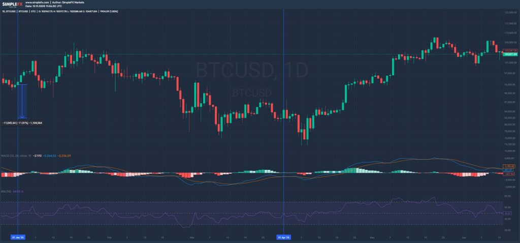 When it became clear that US tariffs wouldn’t be as high as previously thought, BTC began its spring rally. The mid-year closed around $104,000, representing a nearly 30% quarterly gain.